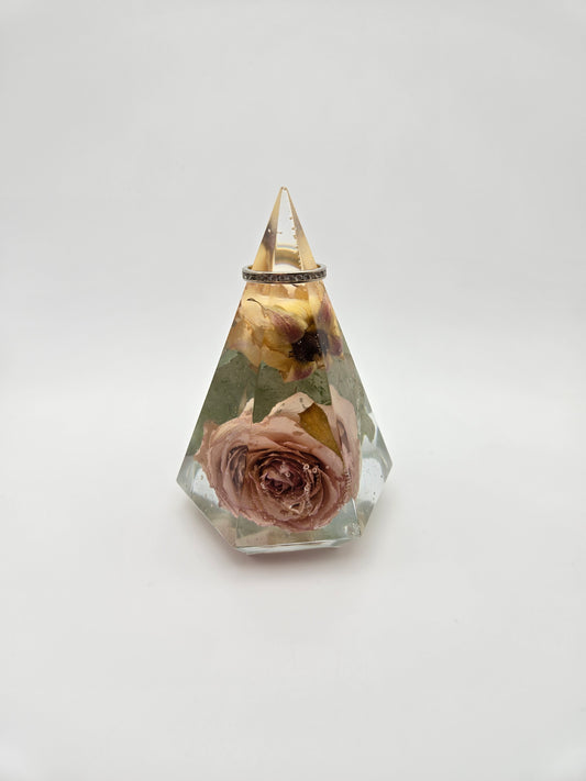 Large Pink and Yellow Spray Rose Ring Holder