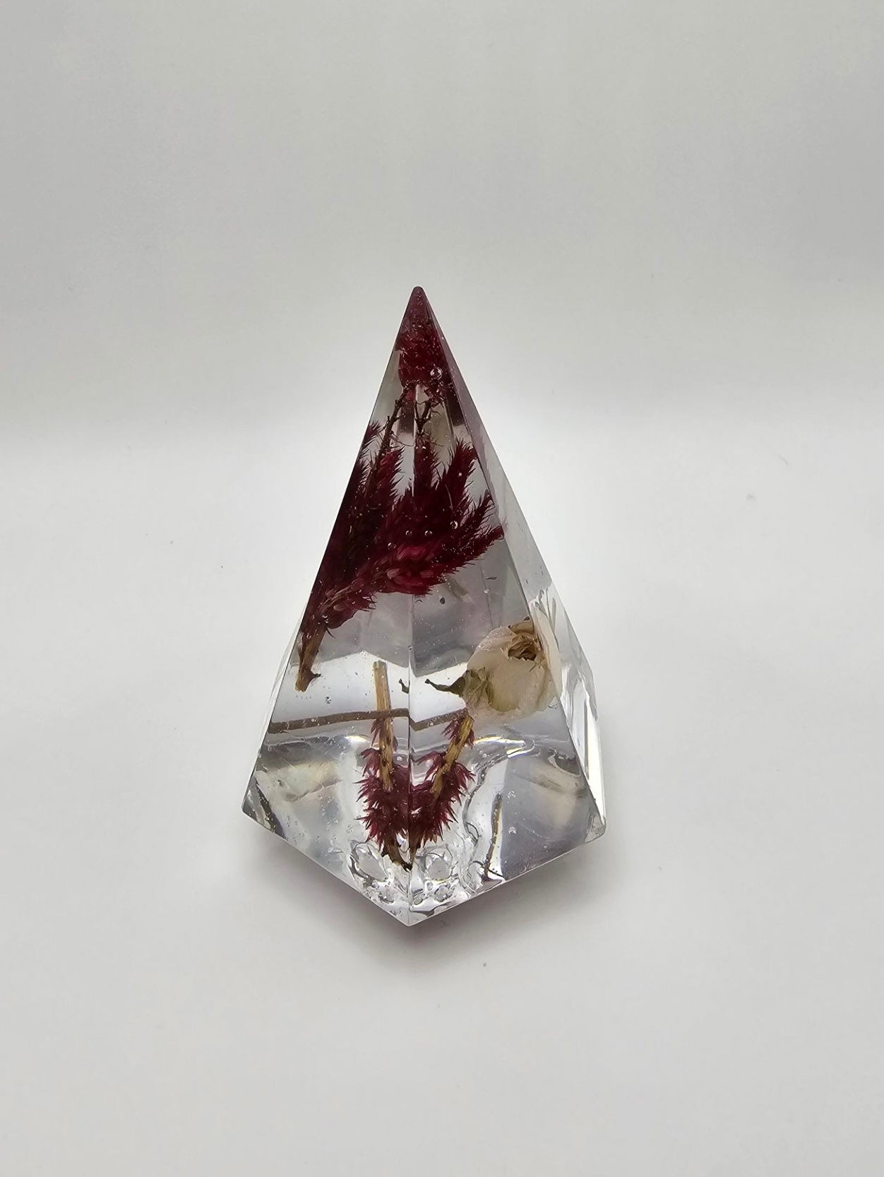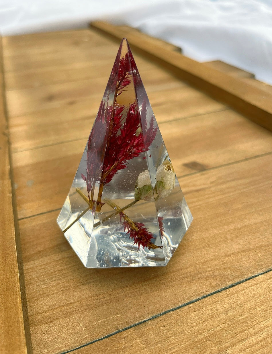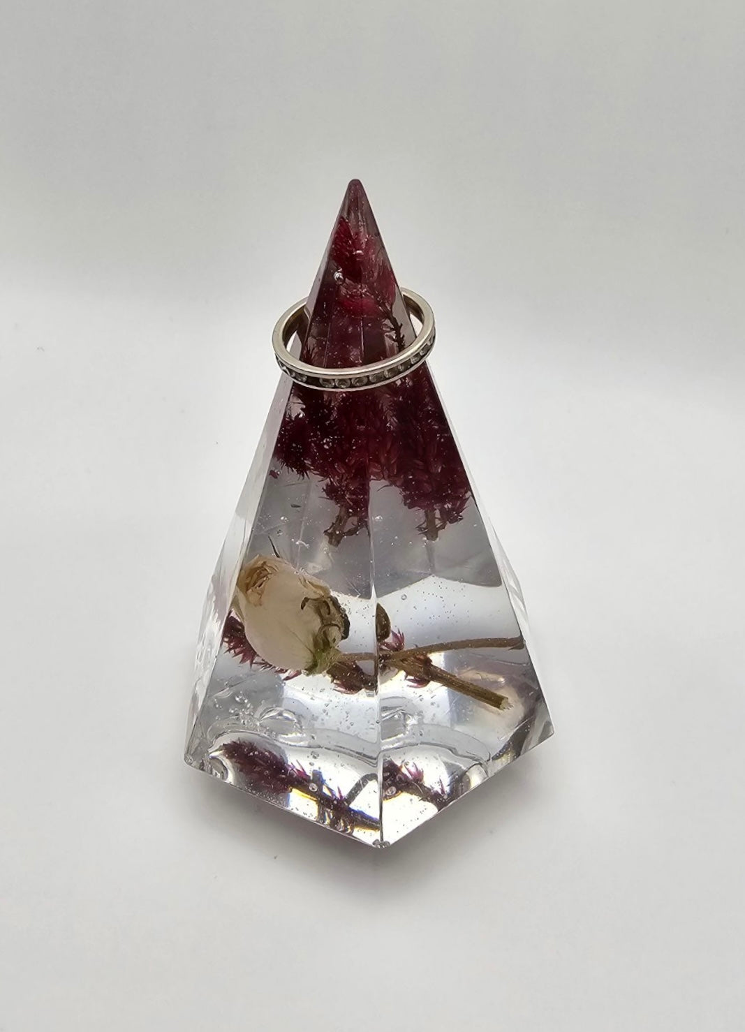 A sturdy stand to hold your rings when you're not wearing them! Each ring holder is handmade and one of a kind. Epoxy resin with flowers.