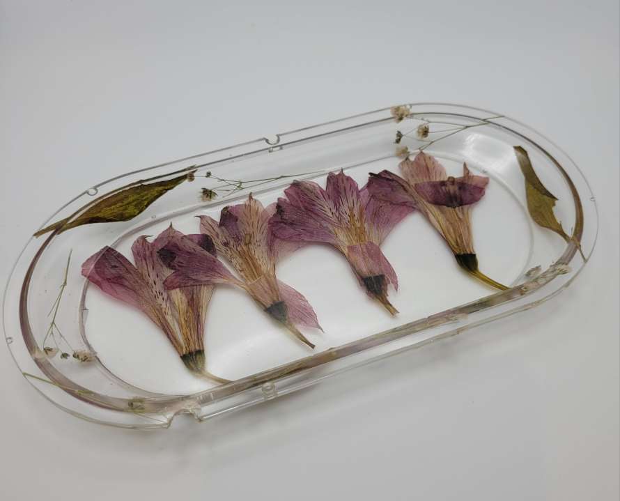 This gorgeous little jewelry dish contains pink lilies and baby's breath. This piece is perfect for holding your jewelry, keys, or spare change. Always handmade and one of a kind.